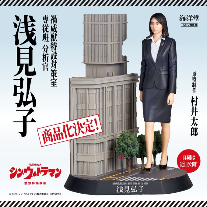 「浅見弘子分析官」商品化決定に多数のご反応をいただき大感謝です! そこで商品化決定記念クイズ 浅見弘子分析官のフィギュアサイズは何センチでしょう?正解をご回答いただいた方の中から3名様に海洋堂製のミニフィギィアセットをプレゼント! #シン・ウルトラマン #長澤まさみ 回答は下記ツリー↓