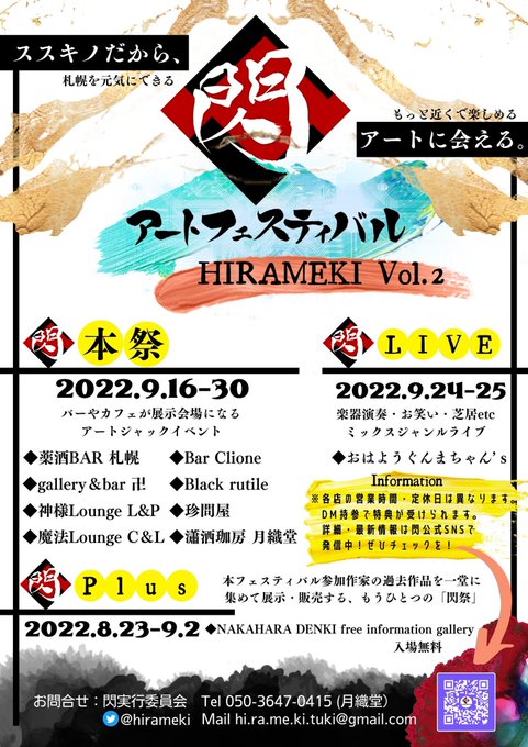 参加させて頂きます〜! 北海道初上陸!!! plus(8/23~)には既存作ですが、本祭には新作をお披露目させて頂きます!! ペンで翼や女の子や猫や模様を描いております 水彩、顔彩、インク、アクリル絵の具も使用致します よろしくお願い致します┏○ペコッ #閃plus #アートフェスティバル閃 twitter.com/Hirameki1/stat…