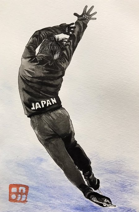 #Shomatober2022 7 : Olympics 北京オリンピックEX❤️ ● 葉書サイズ ● #開明墨汁 #skatetober2022 #shomatober #宇野昌磨 #ShomaUno #イラスト #ファンアート #illustration