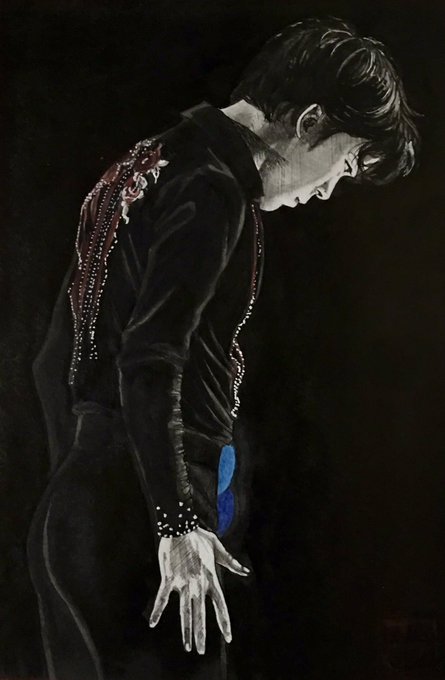 #Shomatober2022 13:Free Skate Gmea「地上に堕ちた堕天使感」とツイートされてるのを読んでインスピレーションを感じました✨ ●A4 ● #開明墨汁 #色鉛筆画 #カランダッシュ #PABLO #マルマン スケブ #skatetober2022 #shomatober #宇野昌磨 #ShomaUno #イラスト #ファンアート #illustration