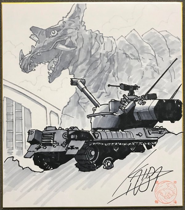 「パゴス VS 61式中戦車ドローイング色紙」特設オンラインショップで発売中です。 #開田裕治 #西川伸司 #地上最大の怪獣絵師祭り gallery21.buyshop.jp/items/59314159