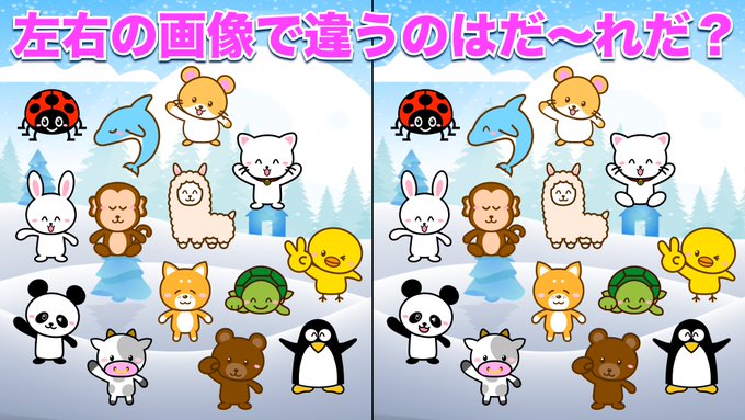 僕が描いたスタンプキャラを使って間違い探し🔍 左右の画像で違うのはだ〜れだ⁉️ 難易度④👆3匹いるよ🙆♂️ 答えをリプ欄に書いてOK👌 答えは後日発表ね😊 #クイズ #間違い探し #動物 #絵師 #スタンプ #イラスト #YouTubeチャンネル登録 アニメ・似顔絵の描いてみた🎥 youtube.com/playlist?list=…