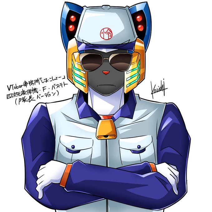 後方腕組隊長、四次元豪傑機・F・バステト #ロボとみんな #バステトお絵描き #関係者フリー素材 #しおこしょー