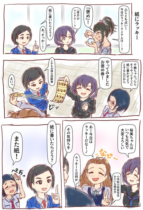 『紙にラッキー』 デレぽ12-12_08:02の。 pixiv.net/artworks/10451… #アイドルマスターシンデレラガールズ #藤居朋 #岡崎泰葉 #白菊ほたる #関弘美 #松尾千鶴 #GIRLS_BE_NEXT_STEP