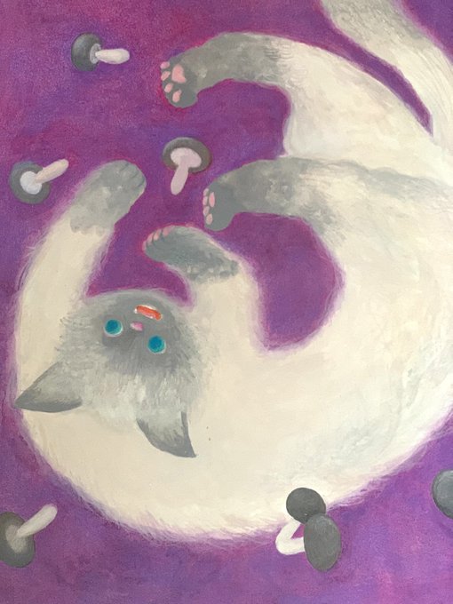 猫とシメジ リターンズ🍄🐈 #ひげはこれから #きのこの山ふうみ #cat #illustration #イラスト #猫イラスト #水彩 #watercolor #関田淑恵 #workinprogress