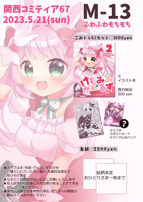 5/21(日)関西コミティア67 @インテックス大阪 サークル「ふわふわもちもち」お品書きになります!🐰 お品書きにないグッズも、在庫のあるものは大体すべて持っていきます! 新作は少ないですが遊びに来てくだされば嬉しいです🙏 よろしくお願いします✨ #関西コミティア67 #関西コミティア