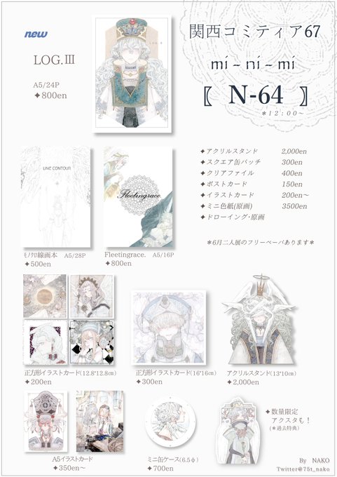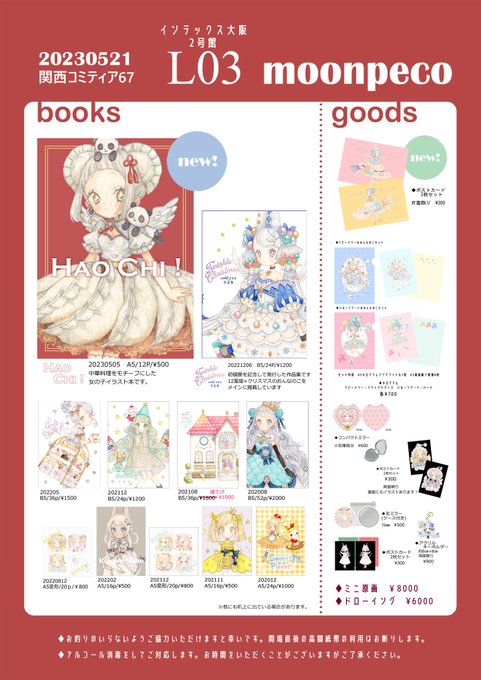 ◆関西コミティア67 L03【moonpeco】 5/5COMITIAの新作を持ち込みます。 ドローイングは明日の出発までに用意出来たらいいなぁと思っています…!頑張ります。よろしくお願いいたします! #関西コミティア67 #関西コミティア #お品書き