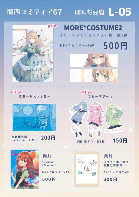 関西コミティアお品書き🌟 新刊とか無くていつもと同じですみませんが💧一応上げておきます カムイくんと合同サークルで「みるきぃLAND & スタジオマシン」 スペースはC-15です 宜しくお願いします🙇 #関西コミティア67 #関西コミティア