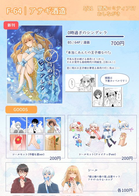 【お品書き】 明日21日の #関西コミティア に参加いたします。 新刊の納期ズレで午前に荷物を受け取ってから会場へ向いますので、当サークルは12時からとさせていただきます! 既刊やドローイングも持ち込みます。どうぞお時間許されましたら遊びにきてください✦ #関西コミティア67