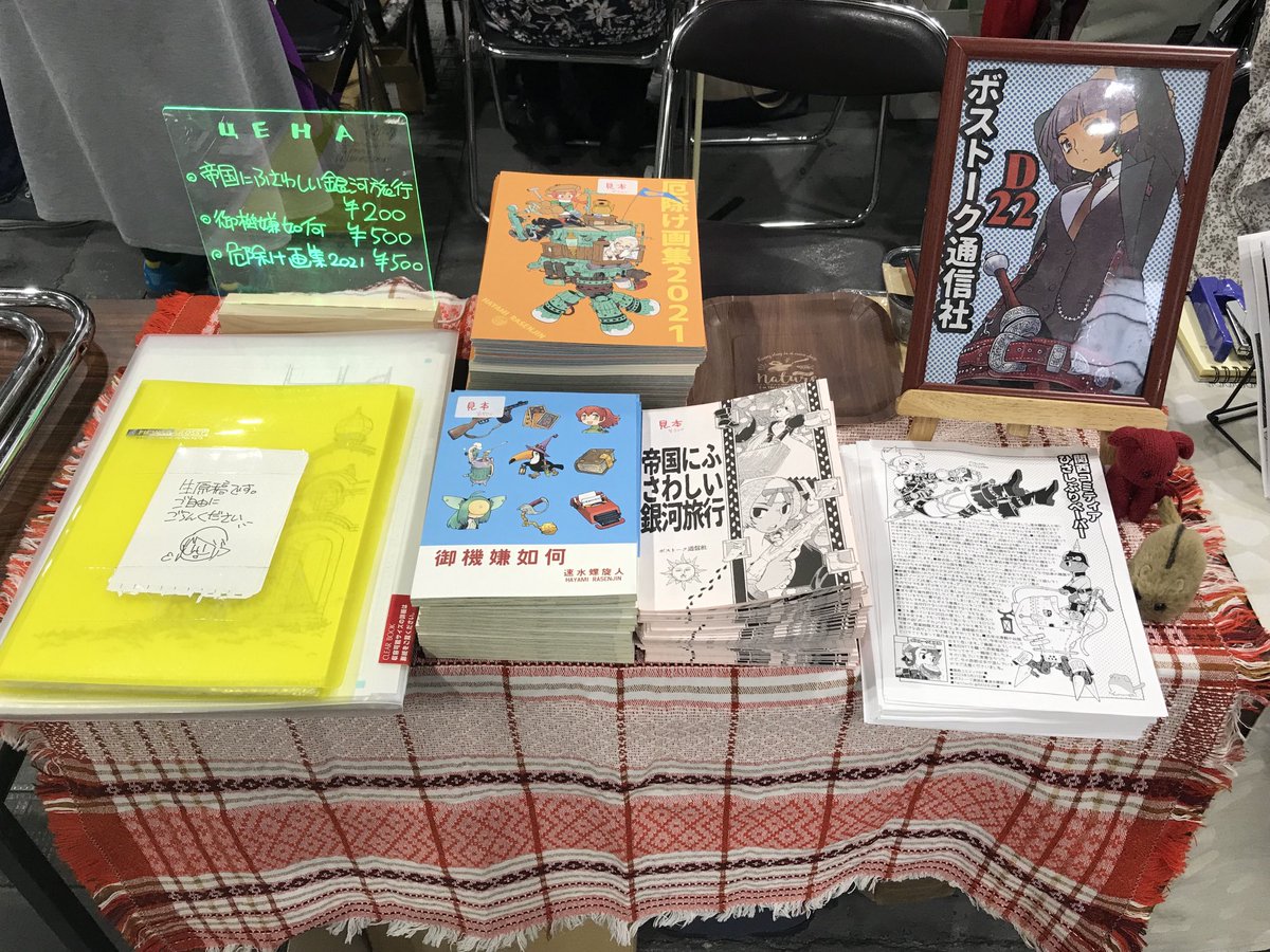 設営終了。関西コミティア【D-22】ボストーク通信社にてお待ちしてます。既刊のみですが、ペーパーあります。また生原稿のファイルを置いてますのでご自由にご覧ください。しかしインテックス大阪、冷房がガンガンに効いてて快適ですよ、文明だ! #関西コミティア #関西コミティア67