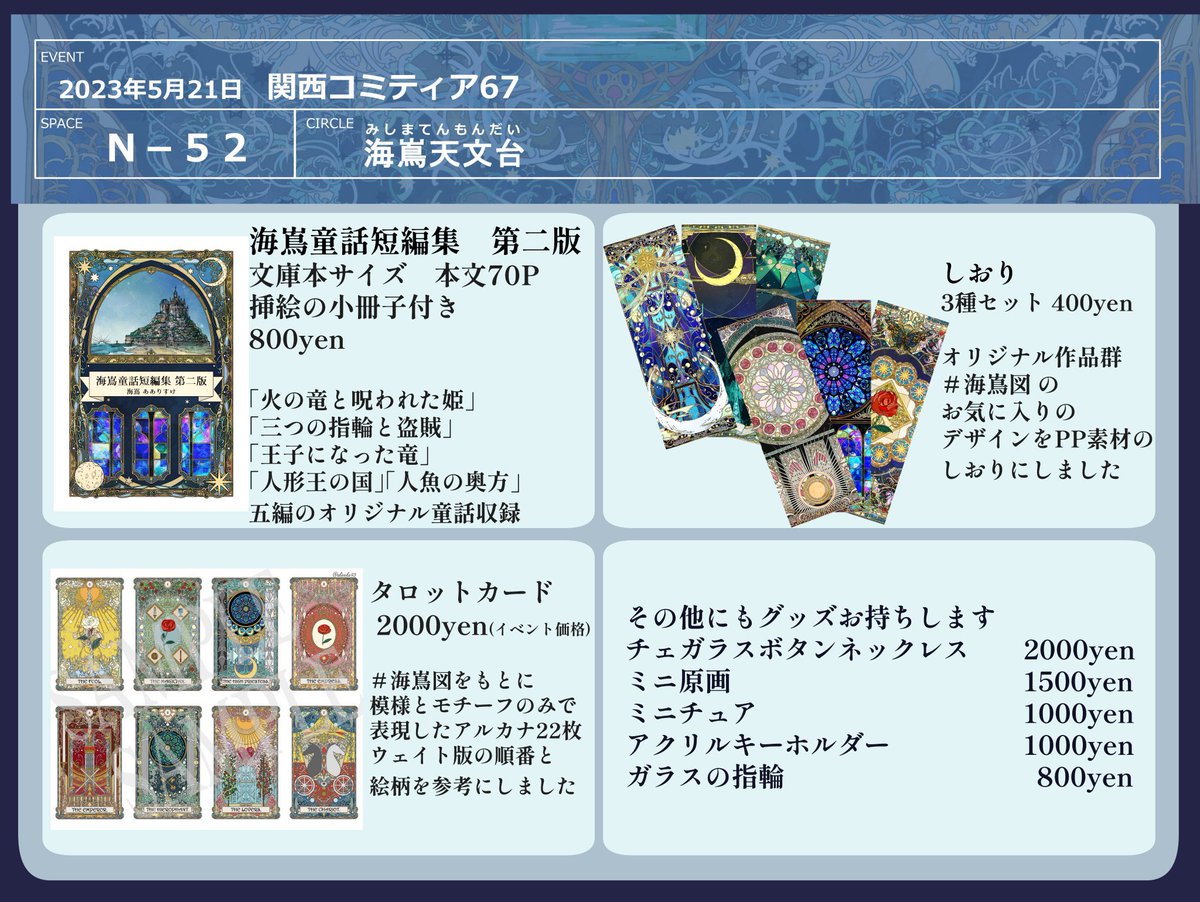 【お品書き】 2023/5/21開催の関西コミティア67にサークル参加します🌟 色鮮やかな作品を多く制作しております ◆サークル 海嶌天文台(ミシマテンモンダイ) ◆スペースN-52 #関西コミティア67 #関西コミティア #お品書き