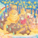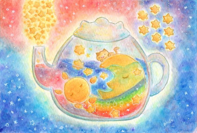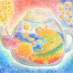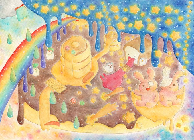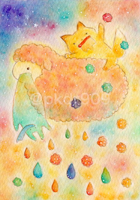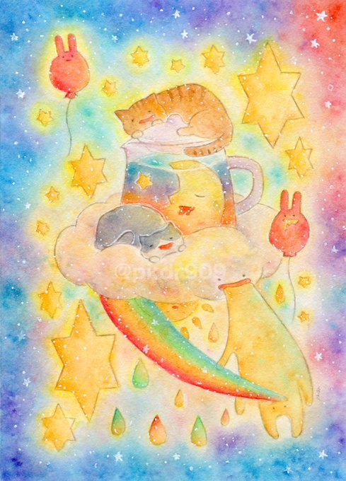 「いつものゆめのまんなかで」 じかんも てんきも わからないけど ぐちゃぐちゃで おちつく わたしのいばしょ #水彩色鉛筆 #イラスト #オリジナル #illustration #闇のおえかきちょう #さめない夢のトレモロ