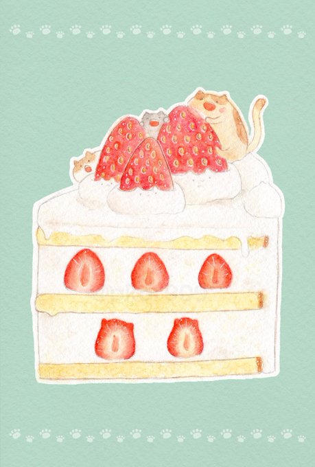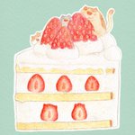 「いちごのケーキ」 ふわふわのスポンジのケーキがたべたい!!!(((( '-' )))) #水彩色鉛筆 #イラスト #オリジナル #illustration #闇のおえかきちょう #イチゴの日