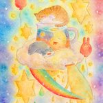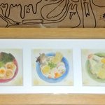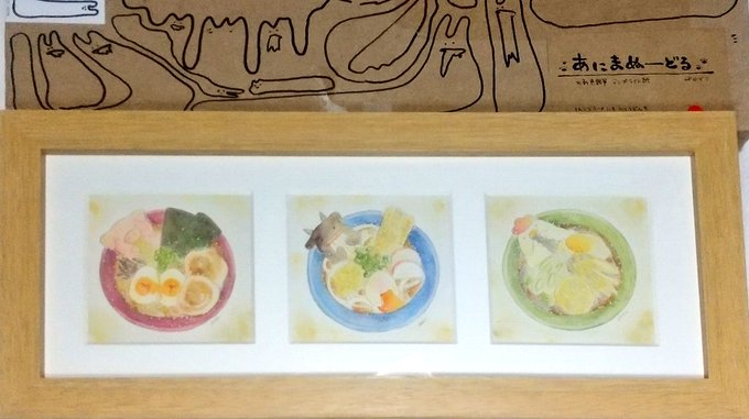 江古田のふたばねこで開催された企画展 #zoozoo4 にてお迎えしたぴかでりさんの三"味"一体の原画。これぜんぶすき。どれもしっかりダシがとれてそうだし、たまごのでろっと感にしてやられた。 #闇のおえかきちょう #ふたばねコレクション