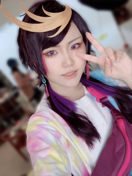 ✨Happy smile😎✌🏻 💜🎠Photoshoot of summer vacation ver. #ShuYamino #YaminoArt #闇ノシュウ #luxiem #nijisanji #NIJISANJI_EN #cosplay #cospleyy