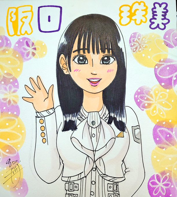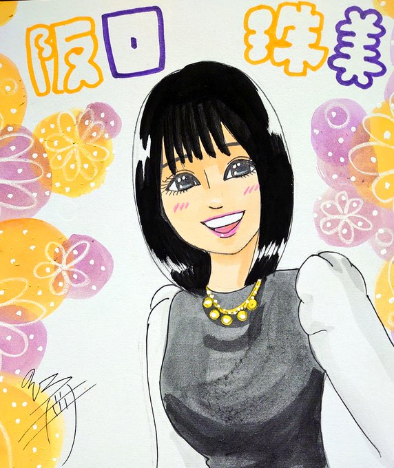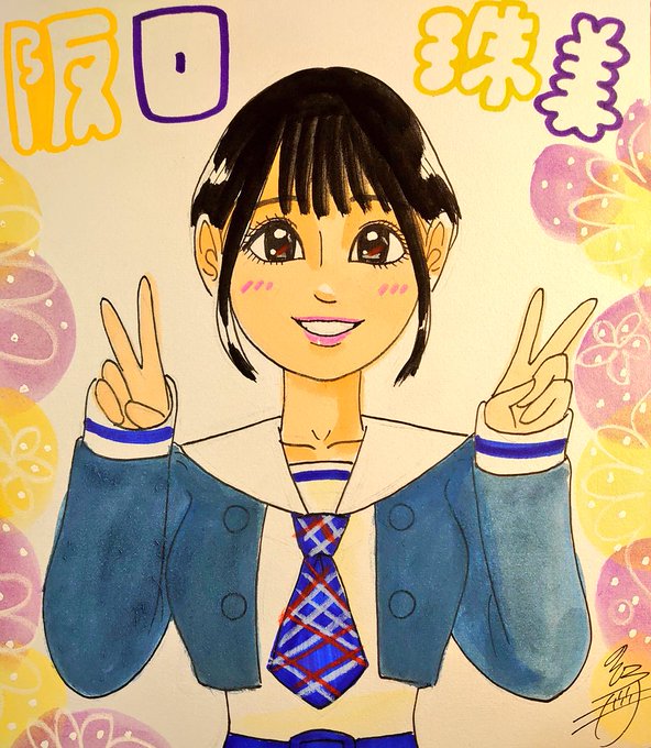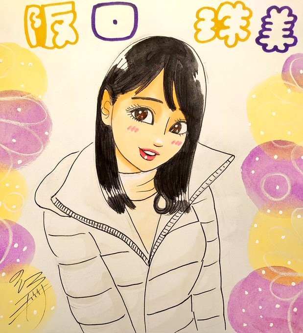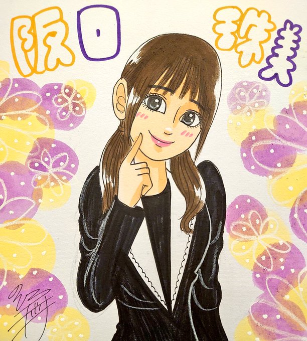ドン! 今日描いた乃木坂ちゃんで〜す(*^^*) たまちゃんの… #2022年自分が選ぶ今年の4枚 💜💛 #似顔絵 #乃木坂46 #阪口珠美 #乃木坂46好きな人と繋がりたい #乃木坂イラスト