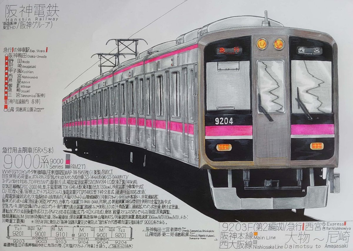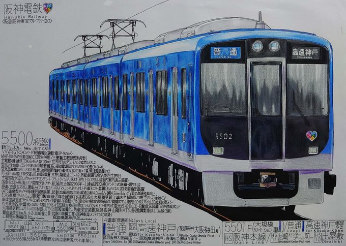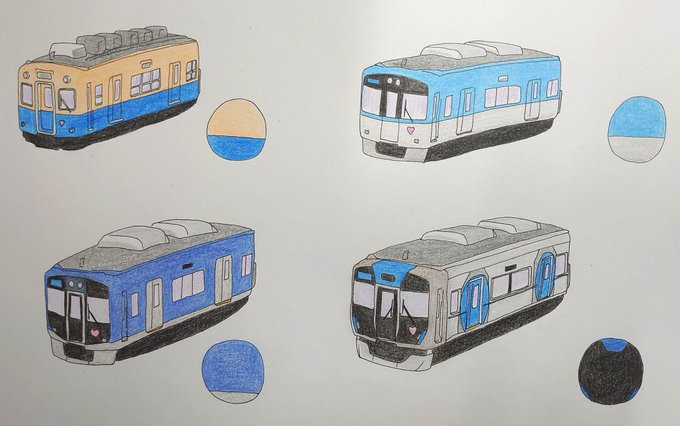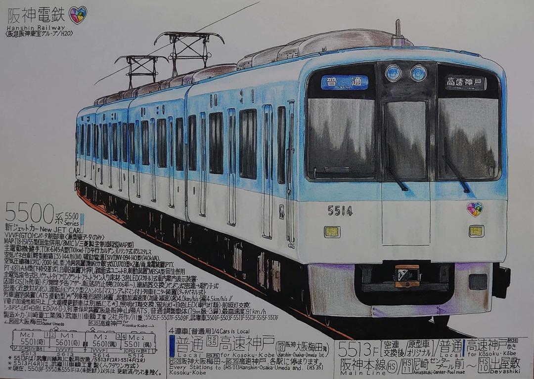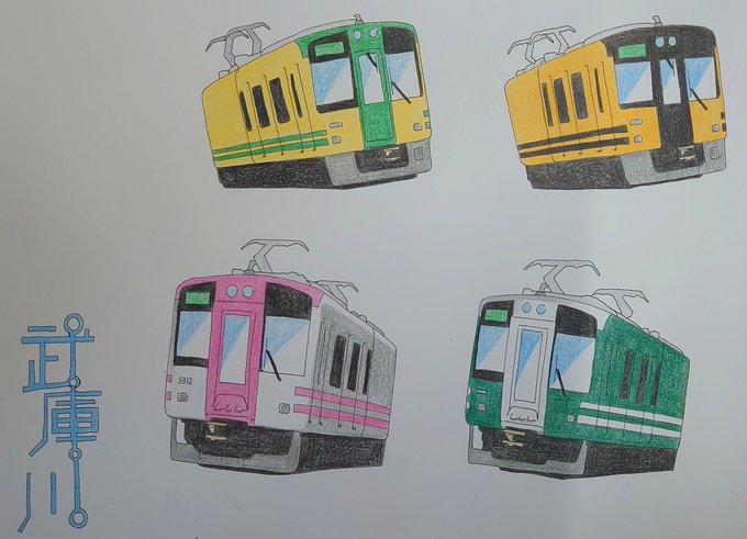 #絵柄が好みって人がいればいいなぁ #色鉛筆 #模写 #イラスト #絵描きさんと繋がりたい #阪神電車 #新ジェットカー 阪神電車の“大規模更新ジェットカー”(5500系改)を描きました〜!