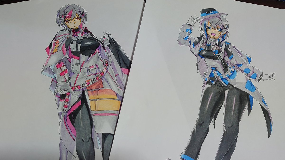 #イラスト #イラスト好きな人と繋がりたい #阪神電車 #山陽電車 #鉄道擬人化 #フェアリーレイルウェイズ 阪急阪神G(阪神系列)の 阪神×山電の新車ちゃん! 赤と青のコントラストカラーがかわいい!