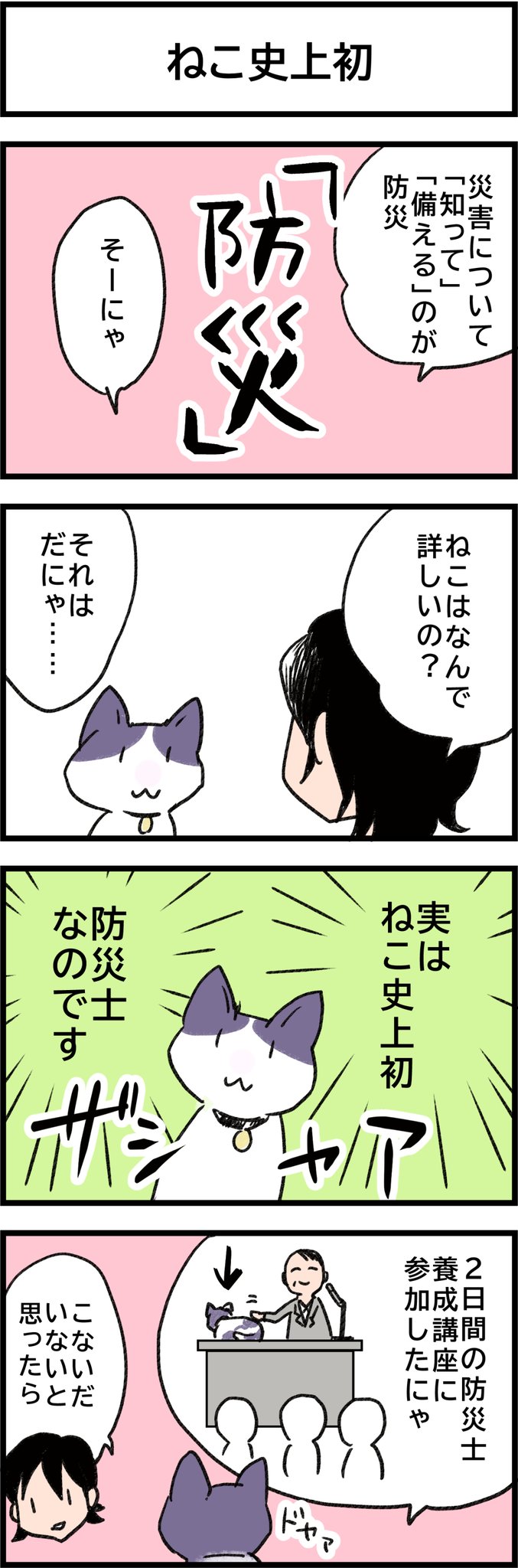 防災4コマ「もしここで」家具の固定を考える 地震にも、ねこにも有効。 #4コマ漫画 #防災マンガ #漫画が読めるハッシュタグ #いろはな防災 #地震 #家具固定 #猫漫画 irohana-bosai.com/manga/manga003…