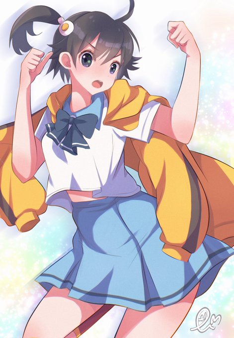 昼間の月火ちゃんに続き #阿良々木火憐 描きました~👊🐝✨ 絵がどんどんポップになっていく...😳 I drew Karen! She grip my heart and won't let go✨ #イラスト #illustration #animegirl #化物語 #bakemonogatari #MonogatariSeries #karenararagi