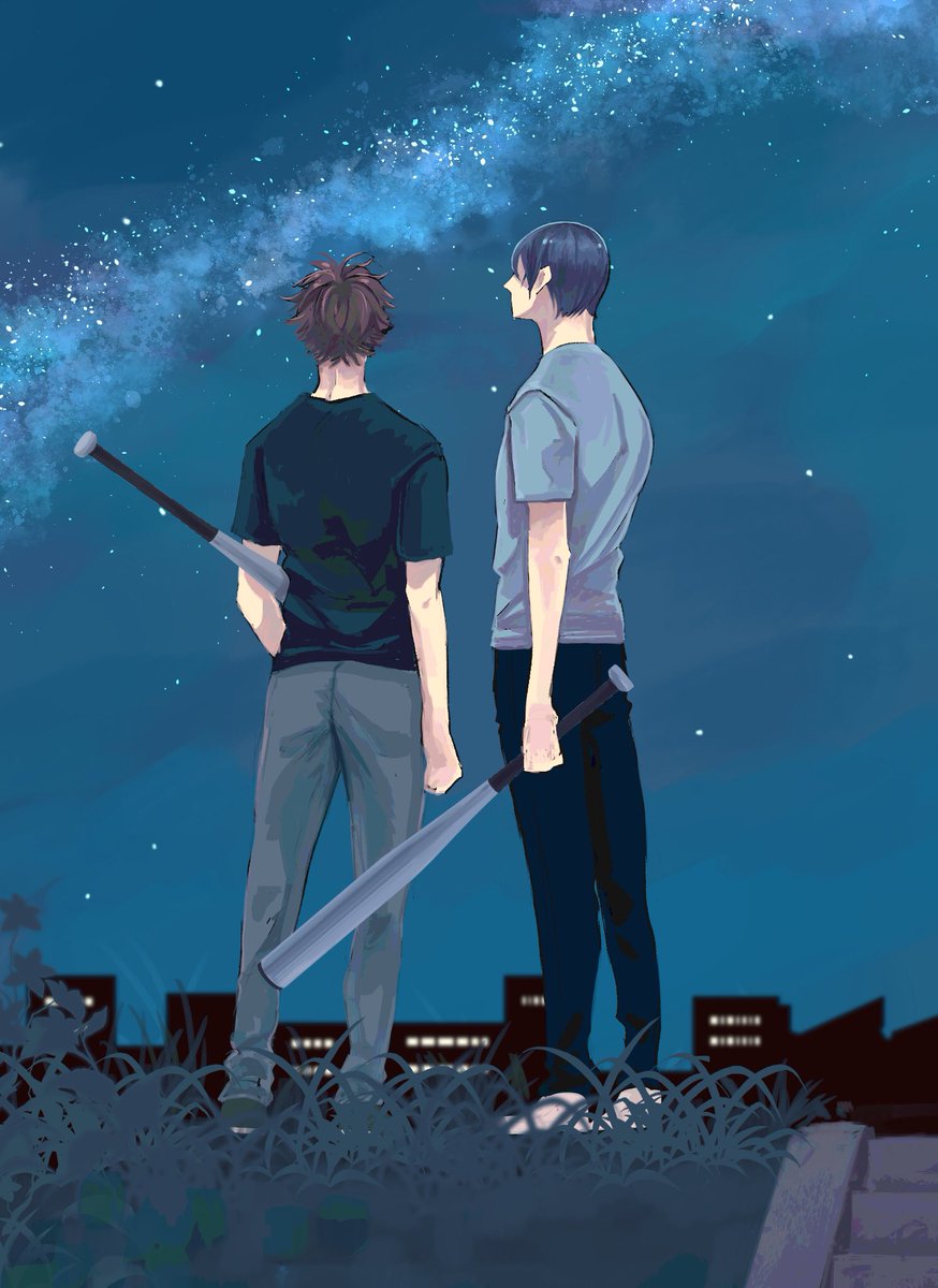 @FM60minDW #降御版ワンドロワンライ 第42回お題:青空 御幸と一緒なら世界の全てが鮮やかになる降谷と、伝わってない栄純。御幸も出したかったけど全然時間足りませんでした😭💦 (※某球場が屋根があるのに雨を感じ、暑い日はより暑く、寒い日はより寒いというのは、個人の感想です🤤)