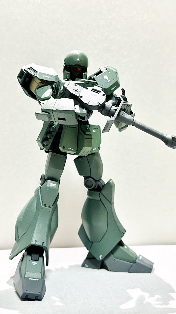 光沢のトップコート吹いたら少し落ち着いたかな 陸上自衛隊ジム マスキングの影響で顔面に塗り残しが出来てしまったので、後で部分塗装しなければ #ガンプラの画像貼るとRTされると聞いて #陸上自衛隊 #陸戦型ジム
