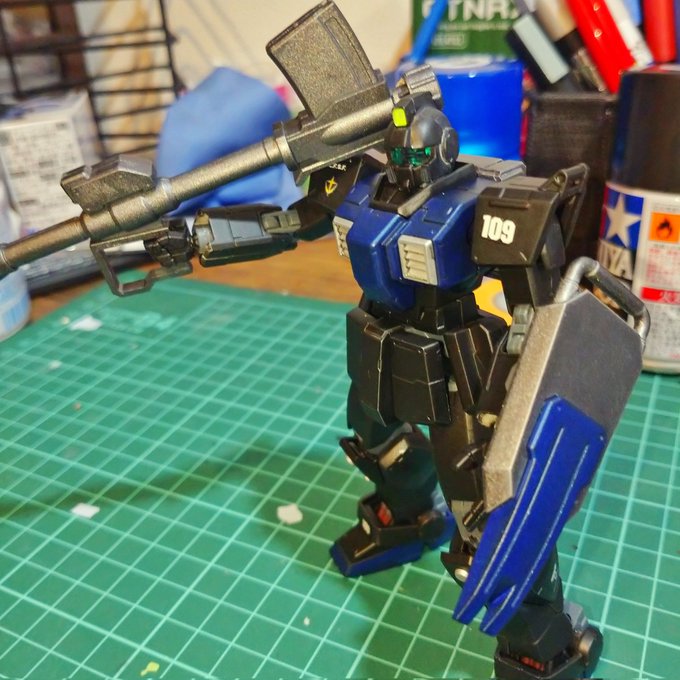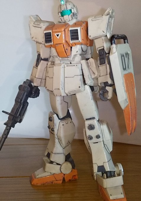 おはようございます😆陸戦ジムを初ウェザリングしたものです🙌あまり汚した感じにはならなくて😥これもやり直したいキットかも知れないですね😅 #ガンプラ #ガンプラはどんな自由な発想で作ってもいいんだ #ガンプラの画像を貼るとRTされると聞いて #ガンプラ初心者 #陸戦ジム