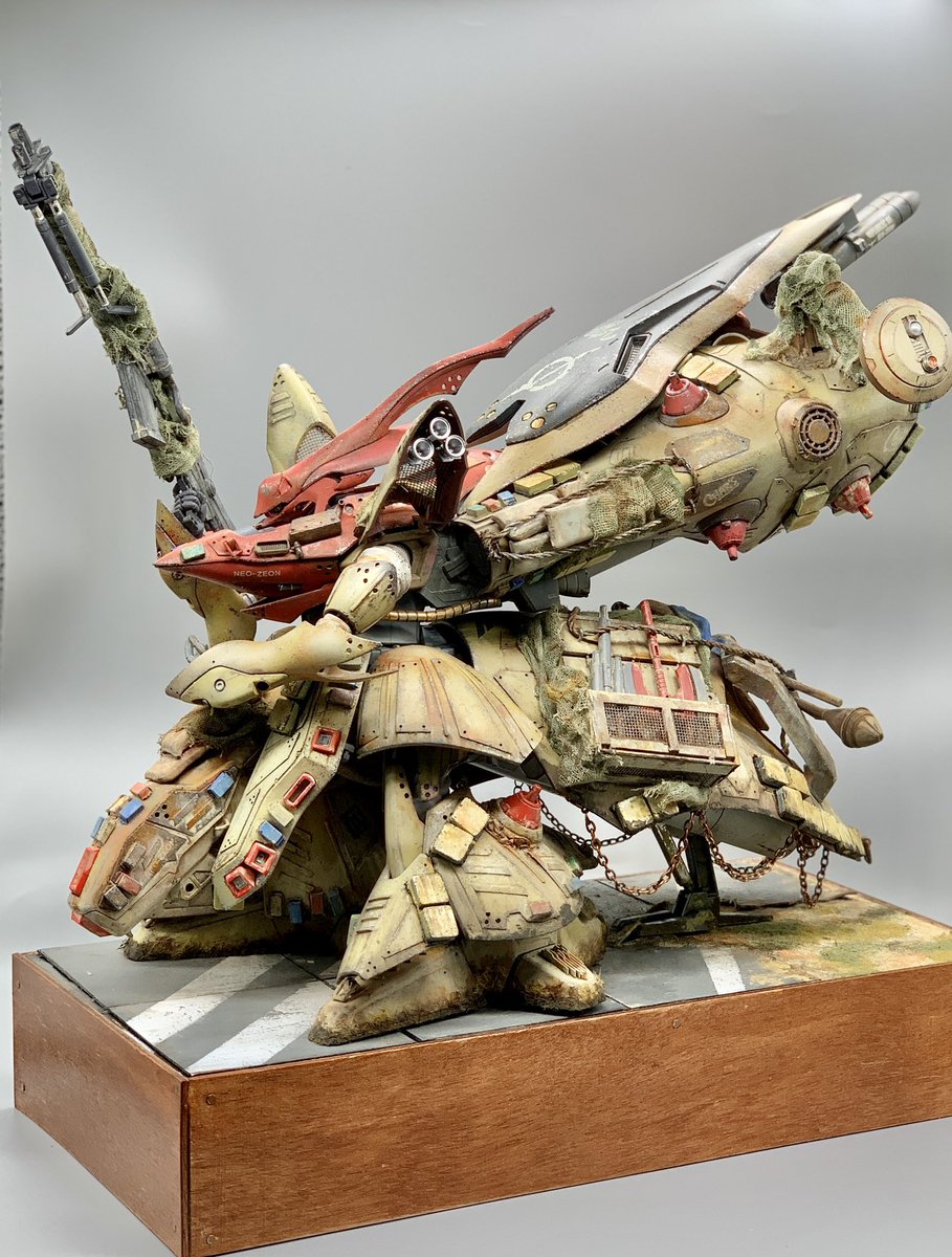 HGUCナイチンゲール陸戦型が完成しました。!宇宙から地球に戦場を移し、移動要塞として運用される機体という妄想設定です。土嚢や、爆発反応装置などAFV風の小物の盛り付けが非常に楽しかったです。 #gunpla #ガンプラ #ガンプラ好きと繋がりたい #HGUCナイチンゲール #陸戦型