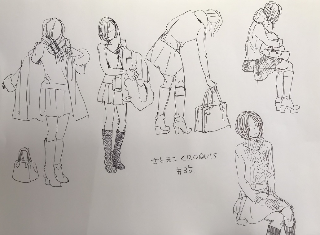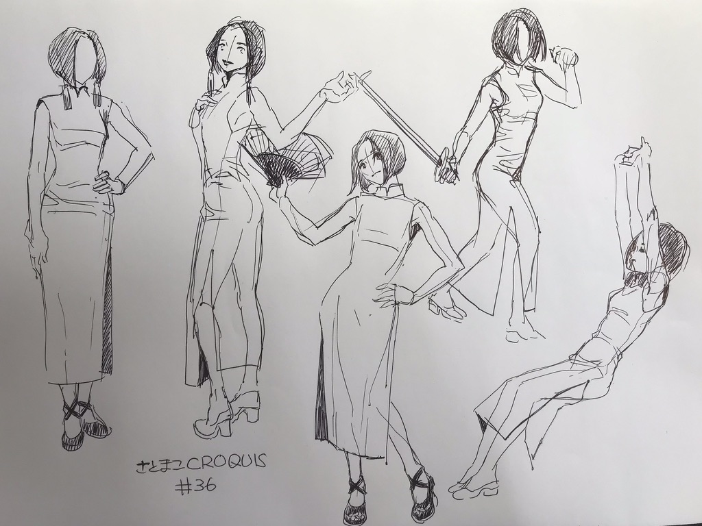 #サトマコクロッキー #SATOMAKOCROQUIS 34・35・36 #日々描く #隙間ラクガキR ゲスト回、モデルは外務卿AYAさん。お顔は隠されているのですが、想像?して描かせていただきました。 1体5分くらいでゆっくりめでかきました。 ありがとうございます!