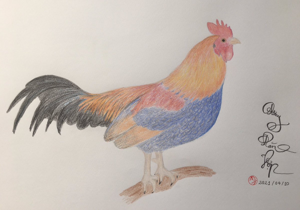 雄鶏@鉛筆画 伊藤若冲画家の他の絵から描く! 早朝で大きく声を鳴いてる雄鶏〜 現在の日本には雄鶏の鳴き声を聞こえないでしょ〜 #鉛筆画 #色鉛筆画 #drawing #伊藤若冲 #雄鶏 #イラスト好きさんと繋がりたい #絵描きさんと繋がりたい