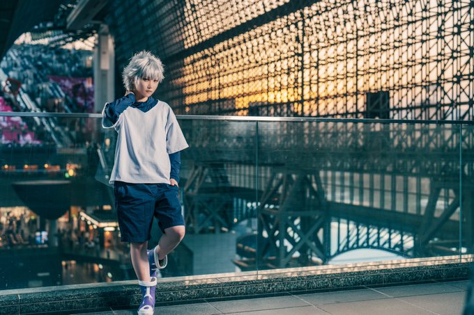 【コスプレ撮影作例】 H×H キルア=ゾルディック m.桜夜ちゃん ワイの方でもエフェクトつけてみたよ。 エフェクトの光で人物が色被りするとかやってみてるけどもっといい感じ気やっていきたい #アコスタ京都駅ビル #雅のコス撮
