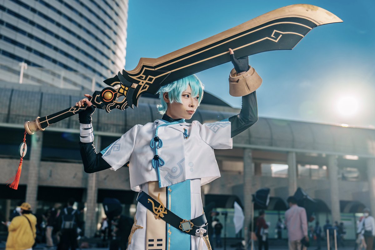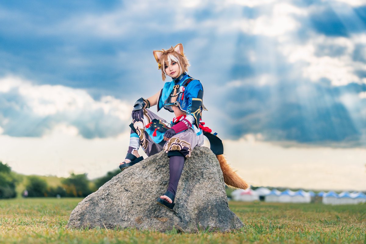 コスプレ撮影&合成 原神 ゴロー model 羽々瀬 愛さん 📷 SONY α1 FE50mm F1.2GM #アコスタ枚方宿 #Photoshop #AdobeStock #LuminarAI #雅のコス撮 んーもうちょい山にガウスかけるべきか、、、そして影の向き厳密にはおかしいんだけどねwww