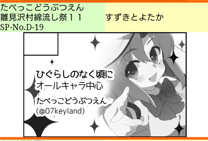 11/21(日)にビッグサイトで開催される #雛見沢村綿流し祭11 にサークル参加します! スペースNo.はD-20です! 日替わり沙都子で描いてた過去絵とかで何か作って持ってく予定です!😊 サークルリスト: sdf-event.sakura.ne.jp/mform/cutfile/…