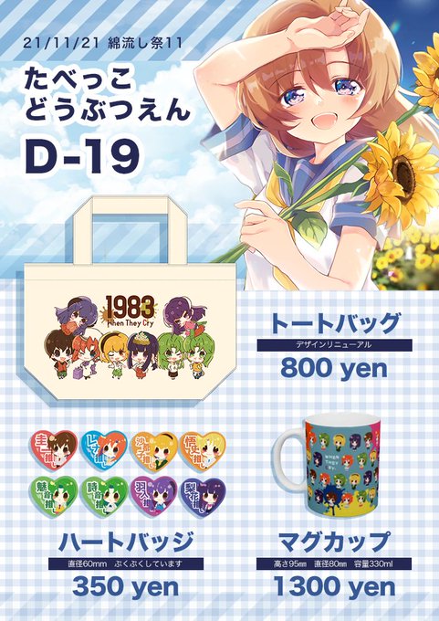 11/21(日)東京ビッグサイト 西ホールで開催される #雛見沢村綿流し祭11 にサークル参加いたします🥰 オールキャラ、グッズ中心です🤗 スペース【D-19】になります!よろしくおねがいします!