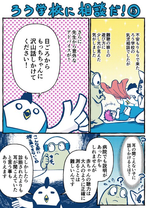 うちの子の場合漫画 「ろう学校に相談だ!番外編」 初めから comici.jp/fukura42/serie… ろう学校に相談だ!の1話目から comici.jp/fukura42/episo… 前話 comici.jp/fukura42/serie… #難聴 #手作りおもちゃ #漫画が読めるハッシュタグ #コミックエッセイ #エッセイ漫画 #イラスト