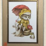 猫のミケランジェロです(⸝⸝´꒳`⸝⸝) 「ピチピチチャプチャプ」描きました!Instagramにもイラストを投稿してますので遊びに来てね🤗✨ Instagram.com/hrnr0904 #猫のミケランジェロ #猫 #絵柄が好みっていう人にフォローされたい #雨 #カエル #傘 #雨宿り #絵