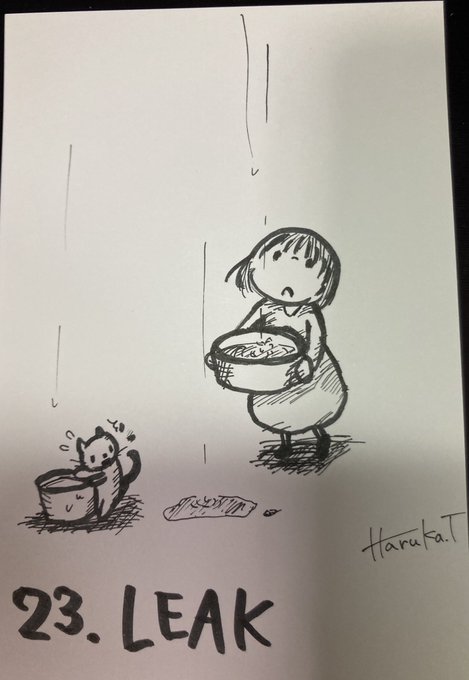 23 - LEAK I remembered that the roof of my parents' house was blown away by a typhoon and leaked until it was repaired🤣 #Inktober #inktober2021 #inktoberday23 #inktober #inktober2021day23 #ink #筆ペン #art #illust #LEAK #cat #イラスト #雨漏り
