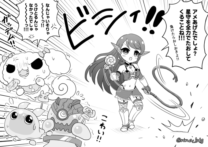 ★ アメとムチ ★ モノクロ練習です! モノクロという事で今回は試しにマンガ的な要素をかなり強めに描いてみました。 普段のイラストと比べてこういうのはどうでしょうー。 #バトガ #バトルガールハイスクール #雨谷エリカ (エヴィーナ)