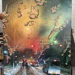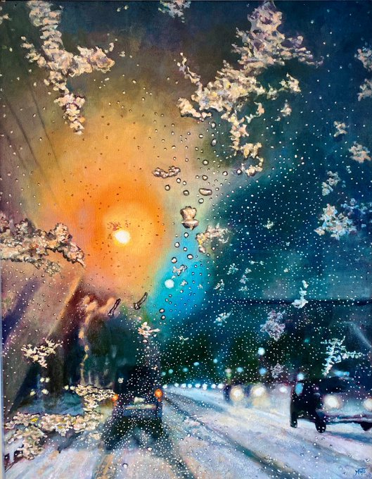 『 帰路につく みぞれ 』 油彩、F80号キャンバス 2022年制作 #絵描きさんと繋がりたい #絵柄が好みって人がいればいいなぁ #みんなで楽しむTwitter展覧会 #油絵 #水滴 #雪 #みぞれ