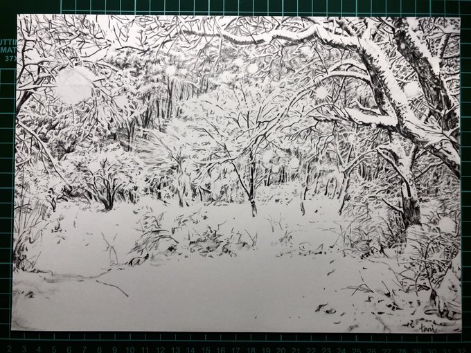 #このタグを見た人は自分が描いたモノクロ絵を貼れ 雪景色描いた_φ((°▽°) 友人に『禰󠄀豆子と炭治郎出て来る?笑』 って言われウケてる笑 確かに🤣 #鉛筆画 #絵描きさんと繋がりたい #絵 #芸術の輪 #美術ネットワーク #pencilart #雪景色 #雪