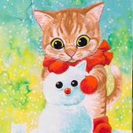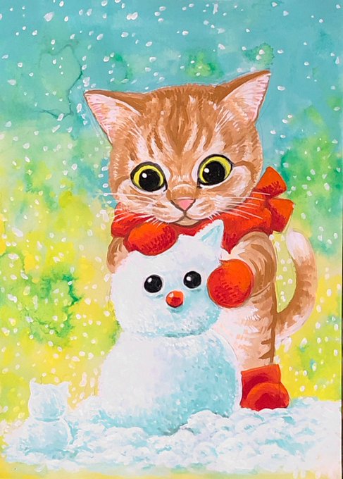 クールな新入りに 冷たすぎて八つ当たり‥ネコ #猫好きさんと繋がりたい #猫 #猫の居る暮らし #イラスト #イラスト好きな人と繋がりたい #絵 #絵描きさんと繫がりたい #一日一絵 #今月描いた絵を晒そう #絵柄が好みって人にフォローされたい #雪だるま