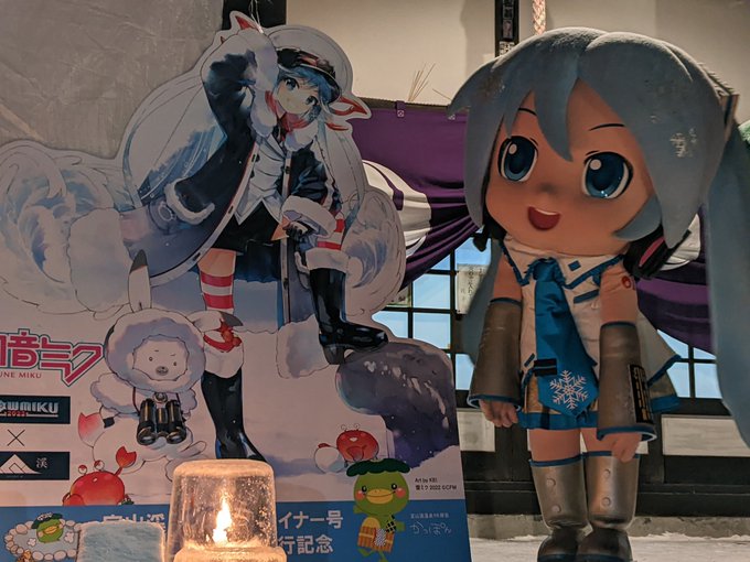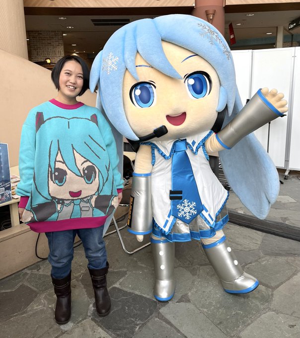 雪ミクダヨーさんと!! 着用しているのは3月発売予定の『ミクダヨーニット』です。ご予約いただいている皆様、お届けを楽しみにお待ちください☺️ (ニットの裾を持つとダヨーさんと手を繋いでる気分になれる幸せなニットです) goodsmile.info/ja/product/134…