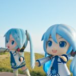 #深夜のねんどろ撮影60分一本勝負 11/30【こんげつのしゃしん】 #深夜の初音ミク撮影60分一本勝負 11/30【フリー】「フライング」 今月一番楽しかったのは、#雪ミク さんに会えたことかな❄ うちの #雪ミクダヨー さんと一緒に撮影したヨー! #初音ミク #ミクダヨー #ねんどろいど