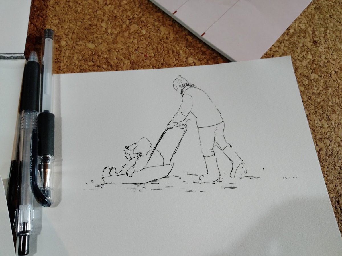 雪の日々の記録。 今月中には記事としてまとめたいものです。 今日は朝一番で、家の人らが寝てる間に一階の掃除完了。 幸先いい! さあ自由時間、 と思ったところで、ちょうど子らが起きました。何でやねん。 #ペン画 #雪国 #イラスト #育児絵日記 #pendrawing #illustration #とかいところから