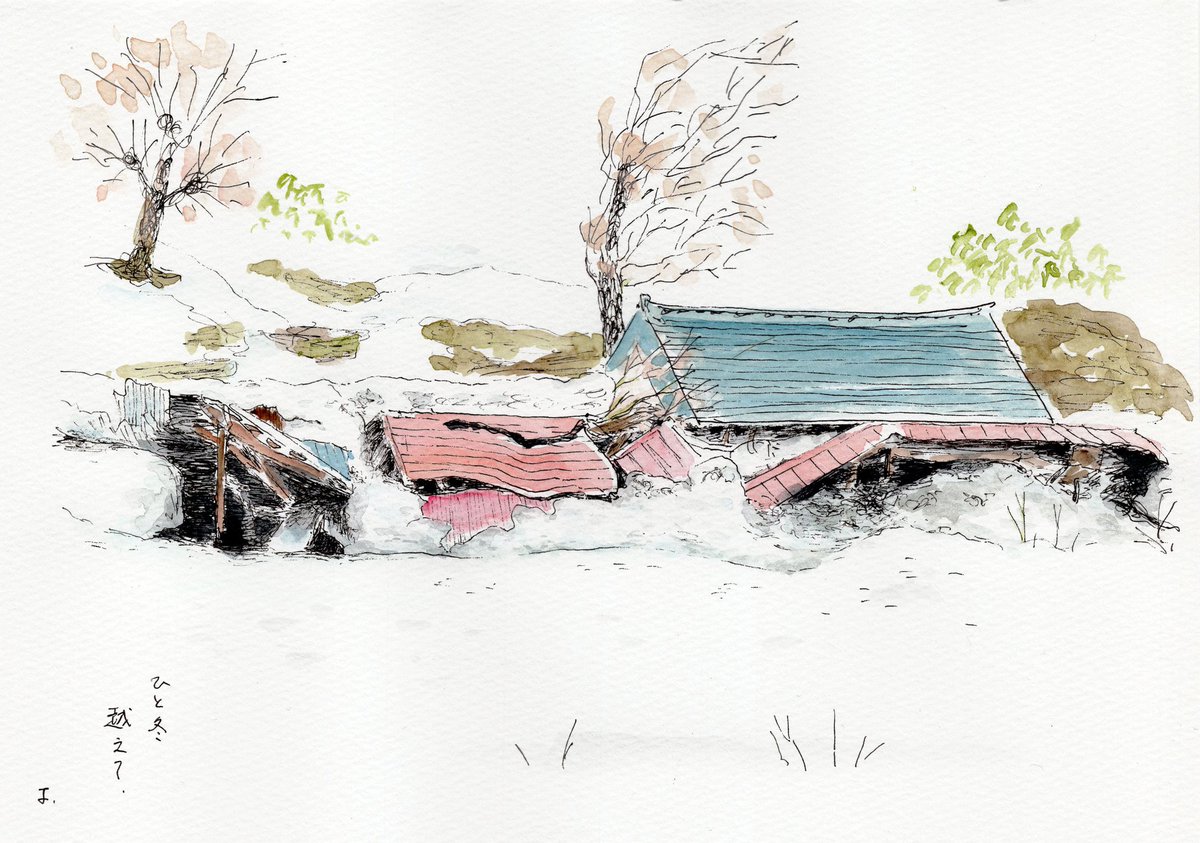 ひと冬越えて お世話になった、もういらっしゃらないご近所さんのお宅… ・ ・ #春 #雪国 #追悼 #いつもありがとうございました #水彩画 #ペン画 #イラスト #風景 #家屋 #watercolorpainting #illustration #landscape #brokenhouse #drawing #とかいところから #tokaitoko