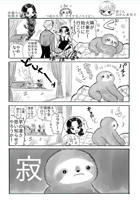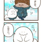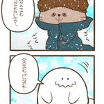 『夜くん・沙羅ちゃん・つめじろう』④ #漫画 #オリジナル #ナマケモノ #夜くん・沙羅ちゃん・つめじろう #ナマケモノの赤ちゃん #雪男 #イエティ #雪山 pixiv.net/artworks/97069…