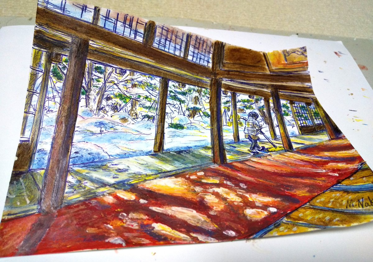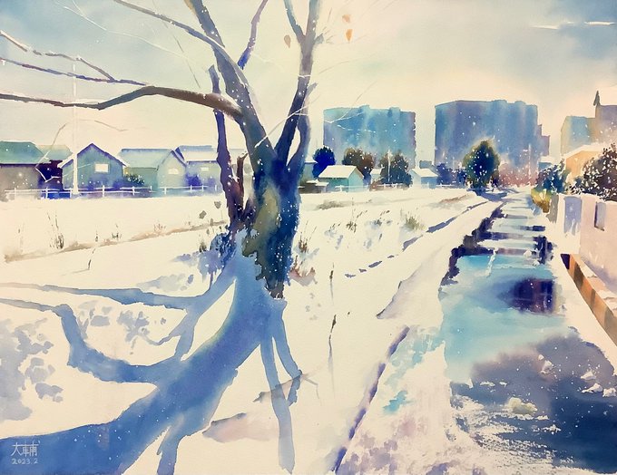雪の日の遊歩道(完全版) F6ホワイトワトソン。 #透明水彩 #水彩画 #風景画 #watercolor #Watercolour #watercolorpainting #watercolorart #雪景色