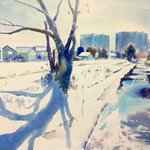 先月降った雪の翌日です。アップしそびれていた雪のスケッチ。 #野外スケッチ #透明水彩画 #水彩画 #風景画 #写生 #芦ヶ久保 #雪景色 #firldpainting #outdoorsketching #watercolour #watercolor #landscapepainting #ashigakubo #aquarelle