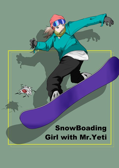 「雪男さんと女の子。スノーボードガールです😆」 #絵柄が好みって人にフォローされたい #スノーボード女子 #女の子イラスト #みんなで楽しむTwitter展覧会 #アトリエ系譜 #雪男さん