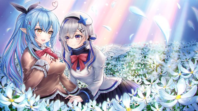 #雪花ラミィ生誕ライブ にて 雪花ラミィさんと天音かなたさんコラボ曲"カラフル"のイラストを描かせて頂きました~!☃👩❤️👩💫 二人のハモり、とっても素敵でした…ありがとう✨ #LamyArt #かなたーと #雪花ラミィ誕生祭2021